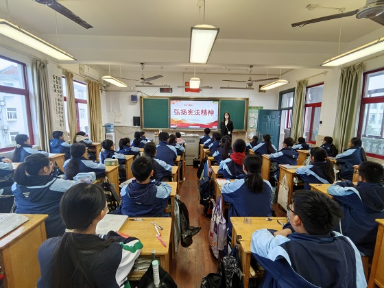 “宪法晨读”活动中,同学们齐声诵读部分条款,琅琅书声回荡在校园的每个角落。宪法主题班会上,各班通过知识竞赛、案例讨论等形式,进一步深化对宪法地位、基本原则和公民权利义务的理解,让抽象的法律条文变得可知可感。