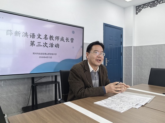 为深化语文教学研究,提升青年教师课堂实践与思辨教学能力,充分发挥名师成长营的示范、引领与辐射作用,2026年4月15日,薛新洪语文名教师成长营第三次研修活动在常州市武进区横山桥初级中学顺利举行。成长营全体成员齐聚一堂,以课例研讨为载体,以评课反思为路径,以高位引领为方向,共研语文教学提质增效之路。